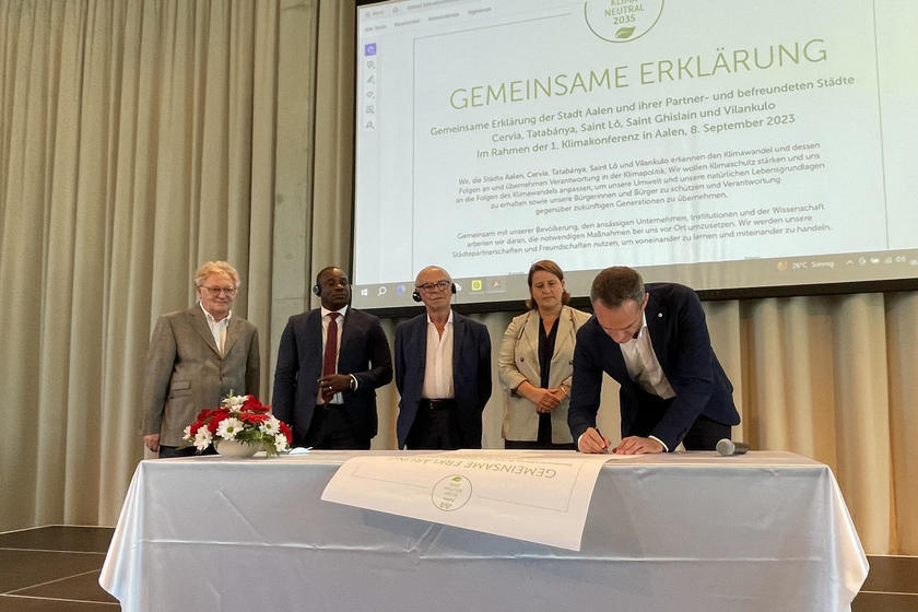 Anlässlich der Klimakonferenz am 8. September 2023 in Aalen mit Vertretern der Partnerstädte wurde eine gemeinsame Erklärung unterzeichnet.
