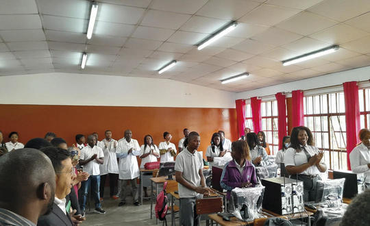 Die Handwerksschule bietet jetzt auch einen Buchhaltungskurs mit der gefragten Software Primavera an. Es werden 6-monatige Kurse in den Bereichen Hauselektrik, Industrieelektrik, Kälte- und Klimatechnik, Informatik, Schreinerei und Schweißen angeboten. Der Buchhaltungskurs ist einer der gefragtesten Kurse in Lhanguene. Hierfür wurden 30 neue PCs, ein Beamer und die entsprechenden Softwarelizenzen angeschafft. Finanziert wurde dieses umfangreiche Projekt vom Stuttgarter Unternehmen Wohnbau-Studio. Jetzt können 30 Teilnehmer pro Jahr in dem neuen Kurs geschult werden.