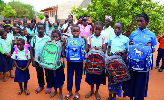 Die Delegation aus Deutschland zeichnete bei ihrem Besuch in Mulungo die besten Schüler mit neuen Schulranzen aus.