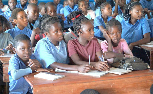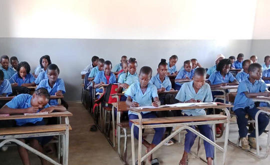 Diese Schüler haben großes Glück: ihr Klassenzimmer ist bereist mit Schulbänken ausgestattet. In anderen DMG-Schulen müssen die Schüler noch auf dem Boden sitzen.